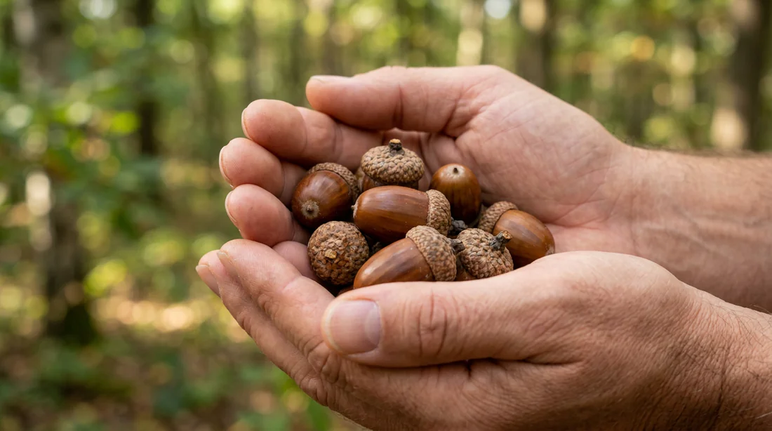 Tout commence dehors, sous un chêne, entre mi-septembre et fin octobre. C'est votre fenêtre de tir. Les glands tombent naturellement quand ils arrivent à maturité, et c'est précisément ceux-là qu'il faut viser. Un gland encore accroché à sa branche ? Laissez-le tranquille, il n'est pas prêt.